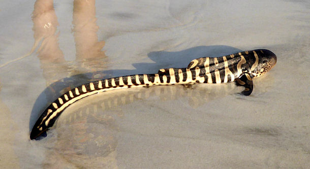 Wir sind gerade auf Bali und haben beim Schnorcheln einen Fisch entdeckt, den wir leider nicht zuordnen konnten. Aufgrund ihrer äußerste ausführlichen Homepage sind wir so frech und schicken Ihnen ein Foto des Exemplares. Vielleicht können Sie erkennen was das für ein Fisch sein könnte. Von der Form her sah es aus wie eine kleine Haiart, etwa 30 cm groß mit auffälligem weißen Streifen seitlich rings um den ganzen Fisch. Vielleicht können Sie uns weiterhelfen.