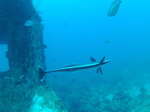 Hallo Freunde von EASYDIVE24, habe dieses Jahr im März wieder und auch 2016 und 2017 in der Bucht von Villa (St. Vincent & the Grenadines) folgenden eindrucksvollen und nicht kleinen Fisch (ca. 50 cm lang) beim Schnorcheln gesehen. Wäre Ihnen sehr dankbar, wenn Sie mir sagen könnten welche Fischart es ist.