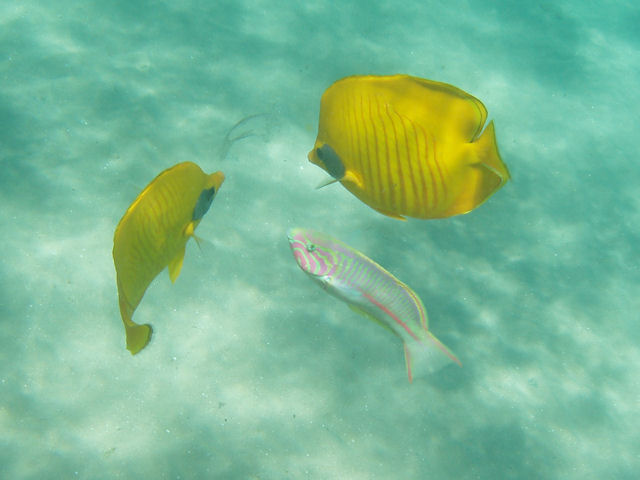 eure sympathische, informative Website hat mir schon oft bei der Bestimmung geholfen. Ostern 2017 habe ich beim Schnorcheln im Roten Meer bei Marsa Alam drei Fische fotografiert, die ich in der Auflistung nicht gefunden oder vielleicht übersehen habe. Das Foto des schlangenförmigen Fischs ist leider unscharf, er ist ca. 25 cm lang und bewegte sich schlängelnd am Grund. Könnt ihr mir sagen, um welche drei Spezies es sich handelt? Vielen Dank im Voraus.