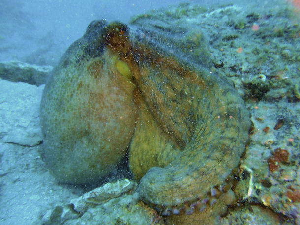 In den vergangenen Tagen hatte ich die herrlichen Tauchgebiete im Nordwesten der Insel erkundet. Man braucht kein Boot, sondern lediglich ein Auto und gefüllte Flaschen. Die Tauchplätze sind ideal vom Land aus zu erreichen. Bei Sichtweiten von bis zu 40 m wurde ich von einer Vielzahl von Fischen begleitet. Schon bei den ersten Tauchgängen stieß ich auf Marmor-Zitterrochen, Sepia und freischwimmende Kraken.