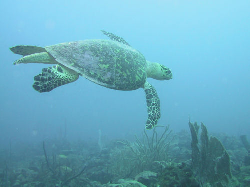 Meeresschildkröten stören sich in der Regel nicht an der Gegenwart eines Tauchers. Wenn man ihren begegnet und den Tieren mit respektvollem Abstand ihren natürlichen Freiraum lässt, kann man sie eingehend beobachten. Sie bieten mit Sicherheit ein schönes Fotomotiv.