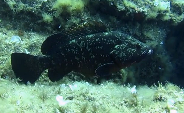 Der Braune Zackenbarsch (Epinephelus marginatus) ist ein häufiger Bewohner der Riffe. Er hat eine braune bis dunkelgrüne Färbung mit einer gelben Marmorierung. Aufgrund seiner Größe von etwa 1 m, maximal bis 1,5 m, und einem Gewicht von bis zu 12 kg ist er nicht zu übersehen. Das Verbreitungsgebiet des Braunen Zackenbarsches erstreckt sich im gesamten Atlantischen Ozean von den Bermudas bis nach Brasilien im Westen und von den Britischen Inseln bis nach Südafrika im Osten. Er kommt auch im Mittelmeer vor.