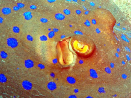 Den Blaupunktrochen (Taeniura lymma), auch Blaupunkt-Stechrochen genannt, gehört zur Familie der Stechrochen (Dasyatididae). Er bevorzugt flache Gewässer in der Nähe von Korallenriffen. Sowohl im Roten Meer, Indischen Ozean als auch Pazifik bis zu den Salomonen ist der Blaupunktrochen recht häufig anzutreffen. Man erkennt ihn sofort an der auffälligen Körperzeichnung: Die Oberseite der flachen Körperscheibe ist mit hellblauen Flecken besetzt. An jeder Schwanzseite befindet sich ein hellblauer Streifen. Er hat zwei Stacheln nahe der Schwanzspitze.