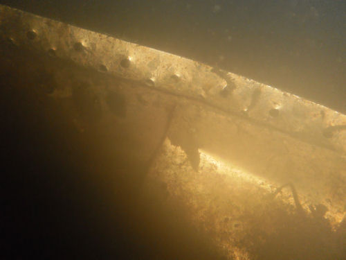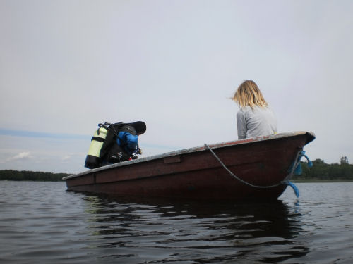 During our first dive, we looked for the crash site at random, this method leading to an hour-long search through the cold dark waters as mud and sediment swirled upwards from the bed of the lake. Finally, my heart skipped a beat as I saw a large object in the murky water. Swimming over in great excitement, I made a closer inspection. With such poor visibility, my mask was half a meter away from the object before I realized it was an old oar sticking out of he mud.