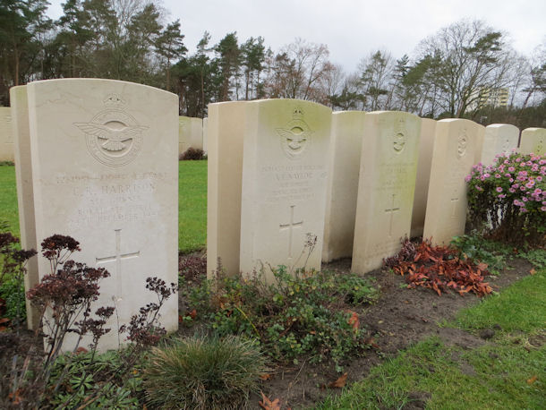 The seven crew members did not survive the crash. Commander Clark and the riflemen Nayler, Harrison and Sugden are buried at the Commonwealth War Graves Cemetery in Berlin-Charlottenburg (graves 5.E.7 to 5.E.10). The bodies of engineer Parkinson, navigator Walker and radio operator Whitmarsh are still missing. Their names have been immortalized at the Runnymede Memorial in Surrey, England.
