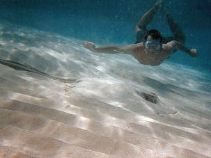 Die größte Attraktion der Hauptinsel Grand Cayman ist „Stingray City“, eine Sandbank, die von unzähligen Amerikanischen Stechrochen (Southern Stingrays) bewohnt wird. Hier tummeln sich in nur 1,5 bis 2 m Wassertiefe unzählige Amerikanische Stechrochen. Ursprünglich fütterten Fischer die Rochen mit Fischabfällen, indem sie hier ihre Fänge zu säubern pflegten. Nach 30 Jahren sind aus den „fliegenden Teppichen des Meeres“ handzahmte Tiere geworden. Die Rochen – mit einer Spannweite bis zu 2 m – verhalten sich heute wie zutrauliche Delphine. Man kann mit ihnen im bauchtiefen Wasser schwimmen, ihre glatte, weiche Haut streicheln (mir kam es eher vor wie eine nasse, glitschige Marone) und sie füttern. Wer keinen Kalmar oder sonst etwas bei sich hat, erhält in der Regel einen festen Rippenstoß, bevor die Rochen weiter schwimmen. Hübsch ist auch anzusehen,