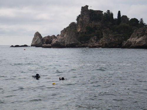 Wer an Sizilien denkt, dem kommt zunächst meist die Mafia in den Sinn, der Feuer speiende Ätna, Tempelruinen aus der Zeit der Griechen und Römer und vielleicht auch die weiten Plantagen voller Orangen, Zitronen und Tomaten. Aber Tauchen? Taormina an der Ostküste Siziliens ist vor allem im Sommer touristisch sehr beliebt. Dem Massentourismus entfliehen kann man Unterwasser. Als Tauchplatz bietet sich unter anderem die Isola Bella an, eine kleine Insel im Ionischen Meer vor der Ostküste. In der malerisch gelegenen Bucht davor, unterhalb von Taormina, findet man auch einige Tauchbasen. Bekannt als Tauchplatz ist Taormina natürlich durch den Tauchfilm 'Im Rausch der Tiefe'.