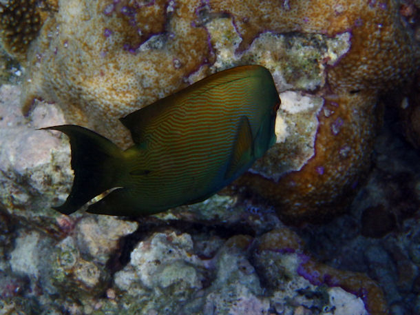 Nun, auch diesen kann ich nicht zuordnen, auch wenn der Körper nach einem Doktorfisch aussieht. Nur diese Streifen finde ich nirgendwo beschrieben.