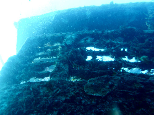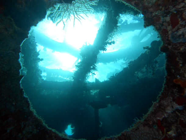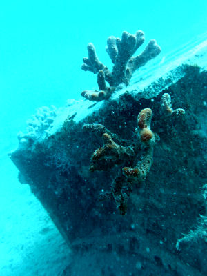 Die Oberkante der erhaltenen Aufbauten liegt in nur 3 Metern Tiefe. Das Wrack wird vom einem großen Schwarm Barrakudas bewacht. Wie Dutzende silbriger Nadeln umkreisen sie das Wrack und schwimmen durch die oberen Aufbauten.