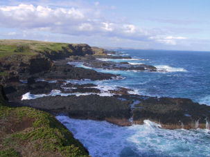 Von Cowes, dem Hauptort Phillip-Islands, starteten wir eine Fahrradtour zur Westspitze der Insel. Immer wieder gab es kurze, aber heftige Regenschauer, was jedoch zur rauen See und der eindrucksvollen Küstenlandschaft passte. Bei Point Grant konnte ich die ersten Pinguine beobachten und fotografieren. Auch sah ich von der Inselspitze aus die große Robbenkolonie an den vorgelagerten Seal Rocks, allerdings nur mit viel Mühe und einem sehr guten Fernglas. Erfreulicherweise tauchte jedoch am späten Nachmittag noch einer dieser lustigen, verspielten Säuger an der Hafenmole von Cowes auf, um einem Angler den Fisch wegzuschnappen und sich dann mir bereitwillig als Fotomodell zur Verfügung zu stellen.