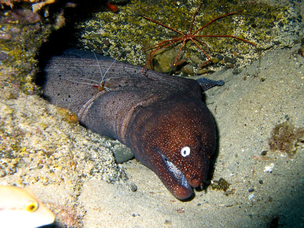 Aus dem Atlantischen Ozean und der Karibik kannte ich die Atlantische Putzergarnele Lysmata grabhami, die regelmäßig in Muränenhöhlen anzutreffen ist.