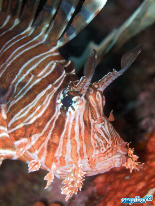 Beim Tauchen vor der Küste der Dominikanischen Republik hatte ich erwartet, viele Doktor- und Kaiserfische zu sehen. Stattdessen sah ich bei fast jedem Tauchgang die - normalerweise aber nicht in der Karibik heimischen - Rotfeuerfische. Bis zu zwanzig Exemplare während eines Tauchgangs. Aber Vorsicht! Die Strahlen der Rückenflosse dieser eleganten Fische enthalten ein starkes Gift, das sehr schmerzhaft und tödlich sein kann. Der Fisch ist ein Paradebeispiel für die natürliche Ausbreitung einer reisefreudigen Art. Das Fatale an der „Rotfeuerfisch-Invasion“: Sie verdrängen heimische Fischarten.