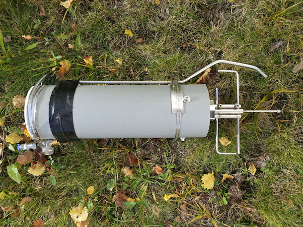 Der nächste Versuch bestand aus einem Stechrohr, mit dem das Sediment regelrecht „abgebaut“ werden sollte. Das Rohr hatte einen Durchmesser von 70 mm, war einen halben Meter lang und hatte eine dünnere Verlängerung zur besseren Handhabung. Das „ausgestanzte“ Material konnte mittels Pressluft ausgeblasen werden. Das Prinzip funktionierte, doch die notwendigerweise schnellen Armbewegungen ermüdeten den Körper unter Wasser rasch. Auch darf man nicht vergessen, dass die Arbeitszeit in 17m Tiefe bei 4°Celsius begrenzt ist(Der Luftvorrat musste auch deshalb eingeteilt werden, weil in den ersten Jahren kein Boot zur Verfügung stand und die Schwimmstrecke von der Einstiegsstelle bis zur Tauchstelle 650 m beträgt).