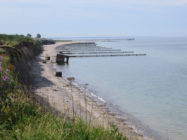 Nördlich von Wustrow befindet sich ein interessanter Steilküstenabschnitt, der bis nach Ahrenshoop führt. An dem markanten, bis zu 20 m hohen Kliff kommt es immer wieder zu größeren Abbrüchen, Rutschungen und Steinschlägen. Es ist also Vorsicht geboten. Hier befinden sich im Flachwasser die Überreste einer Bunkeranlage, die als graue Betonklötze aus dem Wasser ragen. Wahrscheinlich dienten sie zu DDR-Zeiten als Beobachtungsstation der 7. Technischen Beobachtungskompanie der Grenzbrigade Küste.