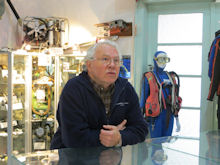 Otmar Richter führte den Bürgermeister durch das Tauchermuseum. Bei dem Rundgang erfuhr er viel Wissenswertes über die Geschichte des Sporttauchens. Otmar Richter erläuterte in einem interessanten Vortrag insbesondere die Entwicklung des Tauchsports im Bezirk Treptow-Köpenick und beantwortete alle Fragen des Bürgermeisters. Er erläuterte auch die Bedeutung des Museums als Lehr- und Begegnungsstätte für Jung und Alt.
