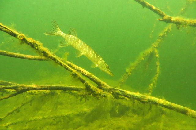 Zwischen Ästen und Bäumen lauern Hechte auf ihre Beute