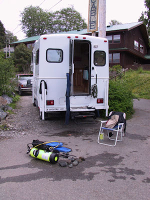 Von Sidney fuhren wir über Victoria zum Long Beach bei Tofino an der Westküste der Insel. Kurz vor Ucluelet sahen wir dann direkt an der Straße unseren ersten Bären. Tofino liegt inmitten des Clayoquot Sound, einem Biosphärenreservat der UNESCO, dessen reizvolle Landschaft und ökologische Vielfalt hervorragende Bedingungen zum Wandern, Angeln, Surfen, Kajakfahren und natürlich auch Tauchen bietet.