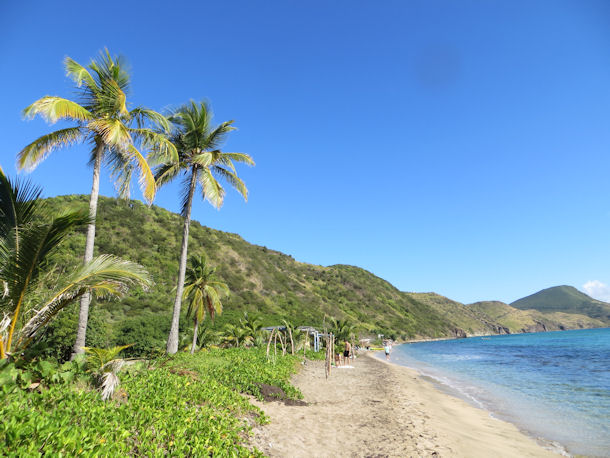 Ganz im Süden der Vulkaninsel reihen sich St.Kitts schönste Strände aneinander - Calypso Bay, Frigate Bay, South Friars Beach und White House Bay. Hier kann man ganz entspannt im Vulkansand liegen und die Sonne genießen. Einige Palmen bieten etwas Sonnenschutz. Am South Friars Beach gibt es sogar einige Strandbars, meist einfache Holzhütten.