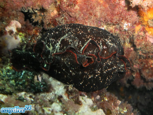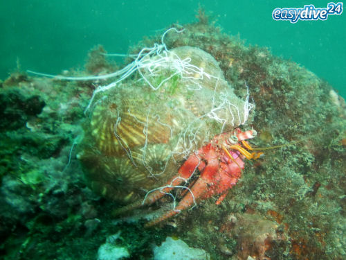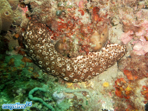 Auf dem Sandboden entdeckt man Forskals Seewalze oder Variable Seegurken. Ab und zu schaut ein Roter Einsiedlerkrebs vorbei, der Anemonen auf seinem Rücken trägt.