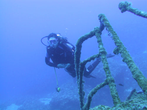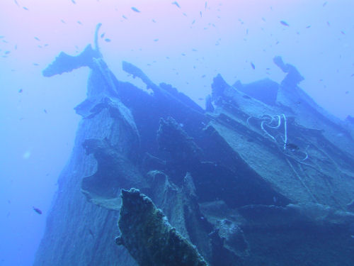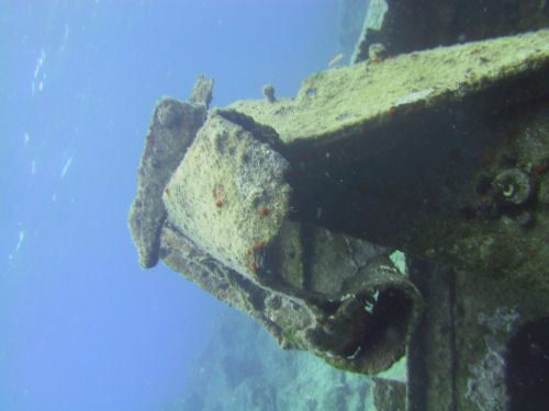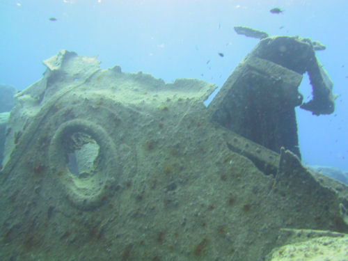 Den Canyon verlassend stößt man zur rechten Hand fast automatisch auf ein Wrack, welches sehr schön zu betauchen ist und von ca. 25 bis 40 Meter hinunterreicht. Es handelt sich um die Überreste des 60 Meter langen griechischen Baumwollfrachters "Dimitri", der hier in den fünfziger Jahren (1956) beim Aufprall auf das Riff zerstört wurde. Das Heck und ein Teil der Aufbauten sind noch einigermaßen erhalten, das Vorschiff ist schon stark zerstört. Neugierig, aber immer auf Abstand bedacht, beäugen den Taucher kapitale Zackenbarsche.