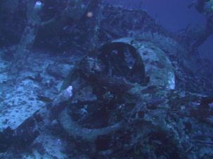 Wer hier ein komplettes Flugzeugwrack erwartet kommt ein paar Jahre zu spät. Nur noch die drei Propeller und ein paar Hydraulik-Leitungen erinnern an das Flugzeug, das Gerippe dagegen ist ziemlich verfallen und die Außenhaut fehlt komplett. Das Wrack ist jedoch schön bewachsen und man begegnet kapitalen Zackenbarschen und dösenden großen Skorpionsfischen.