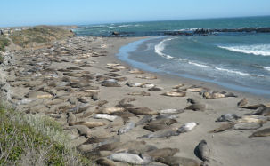 Der hier anzutreffende Nördliche See-Elefant (M. angustirostris) war einst lückenlos entlang der Westküste Nordamerikas von Alaska bis Baja California verbreitet. Da man ihren Tran kommerziell nutzen wollte, setzte im 19. Jahrhundert die massenhafte Abschlachtung der Tiere ein, bis man die nördliche Art letztlich für ausgestorben hielt. Eine einzige winzige Herde von weniger als hundert Tieren hatte aber auf der mexikanischen Insel Guadalupe überlebt und als diese entdeckt wurde, wurden die See-Elefanten unter Schutz gestellt. In den 1930er Jahren gingen erstmals wieder See-Elefanten zur Paarung an der kalifornischen Küste an Land. Inzwischen nehmen die Bestände wieder zu, so dass die Art nicht mehr für ernsthaft gefährdet gehalten wird.